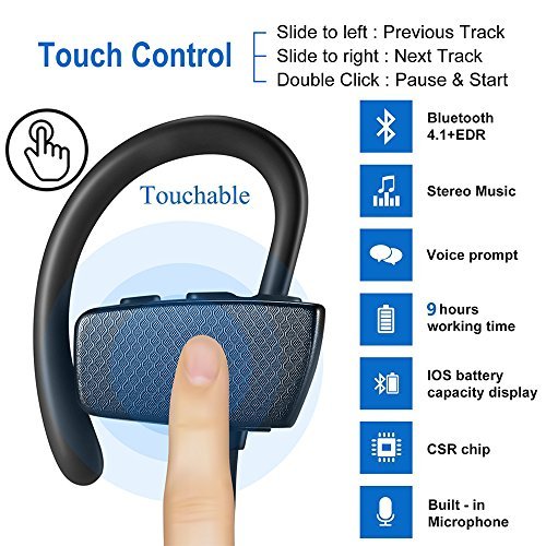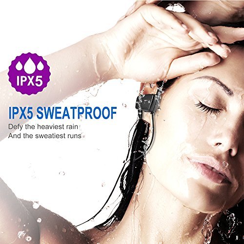 ADVANCED TECHNOLOGY: Adopts Latest CSR chip technology to produce incredible sound quality with deep bass and crystal clear treble. Adopts CVC 6.0 technology to reduce background noise, enables much more clear music and microphone sound. IPX7 WATERPROOF: Water-resistant Nano-coating with durable material efficiently protects headphones from water and sweat, allow you to enjoy the music freely. Ideal for running, cycling, hiking, climbing, yoga, gym, travelling, etc. COMFORTABLE AND SECURE FIT: With ergonomic and flexible in-ear designed, soft silicone over-ear hooks and memory ear tips, secure behind your ears and rest comfortably in the ear canal, guaranteed to be 100% secure & stable during intense exercise such as running, climbing, cycling and other outdoor sports, you won't worry it falling out.
