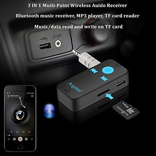 Double the Joy: You can either listen to high quality music or use the receiver as a hands-free device to let you drive safely with up to 8 hours music streaming. It also provide TF/SD card slot, enjoy your favorite wireless music all the time.
