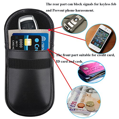 【High Quality】With Fine tailoring, environment friendly and durable material, this car key signal blocker case has waterproof leather surface, easy to clean. Comes with 2 pouches, allowing you to protect your spare key at home, or multiple vehicles in your household.