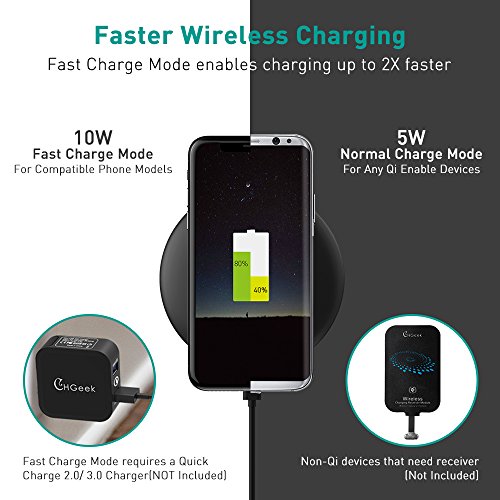 【Fast Wireless Charger】CHGeek 10W Fast charge modes(1.4 times faster than standard wireless charger stand instead of charging by phone cord) are ONLY available for Samsung Galaxy note 8, S8, S8 Plus, S7, S7 Edge, S6 Edge Plus, Note 5. For newest iPhone X, iPhone 8, iPhone 8 Plus and other Qi-enabled devices will charge at regular .