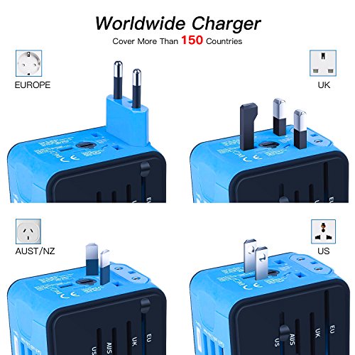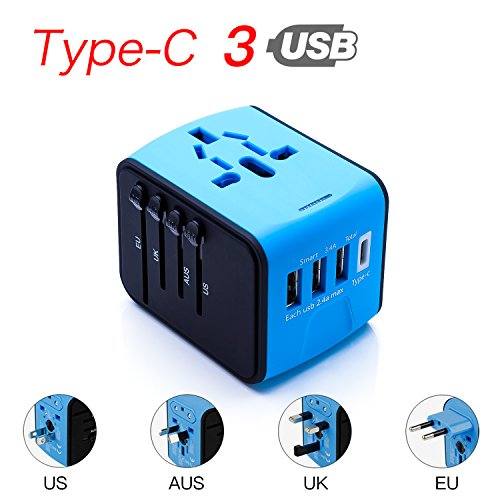 【4 in 1 International Travel Adapter】: This adaptor integrates US, EU, UK and Aus plugs as well as Type C Port and 3 USB Ports. It can recognize any device and simultaneously delivers charging current to four devices quickly, safely and efficiently. You can use it for your cell phone, iPhone, iPad, Power Bank, MP3/4/5 and Camera etc. Note: NOT for high-power appliances such as hair dryers, straightener,electric kettle and so on.