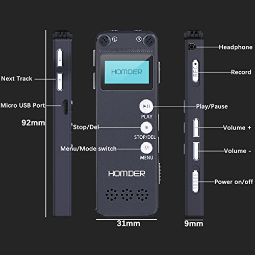 Multi-function Settings: HD voice recording, rechargeable, AGC automatic noice reduction, voice activated function, recording playback, MP3 playback, A-B repeat during playback, password setting ect.