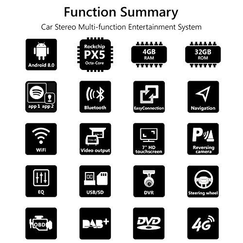 Various function: Navigation can be achieved by using the online, offline map or purchasing a map card. It can quickly run all navigation apps like Google Maps, Waze, etc; Steering wheel control function, Bluetooth 4.0 for clearer hands free calling and audio streaming (BT music), EasyConnection (Android via USB, iPhone via WIFI), you can DIY many kind of button colors by yourself