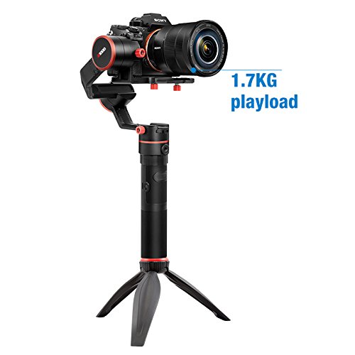 2018 Upgraded Version 1.7 KILOGRAM PAYLOAD: SONY A7s(16~35mm lens) , SONY 5100 , SONY RX100 Series (DSC-RX100M5 , DSC-RX100M4 , DSC-RX100M3) , SONY a6500(18~105mm lens), Gopro HERO5/4, Yi 4K Action Camera , Panasonic LUMIX GH4 Camera and other similar size cameras of the total .a1000 gimbal stabilizer compatible with SONY A7s/ 5100/ RX100 Series/α6000 Panasonic LUMIX/Gopro HERO5/HERO 4 /Yi 4K/Smartphone. Min payload is 150g, max payload is 1,700g, suitable for many kinds camera and smartphones.