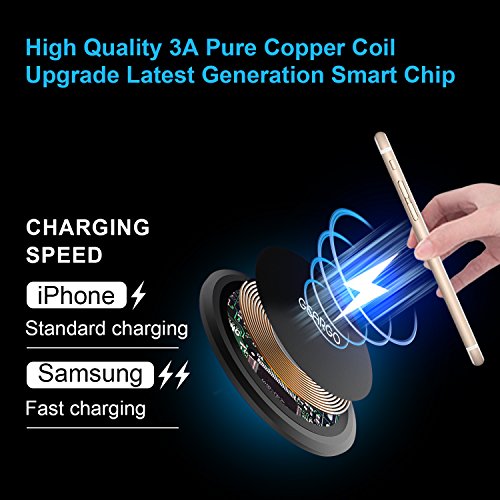 PERFECT DESIGN – The frame of our wireless charger is made of the aluminum alloy material, which can keep your device and charger cool during charging. Ultra slim and light charging pad with high-quality anti-skid silica gel, it won’t drop down even tilt 45 Degrees