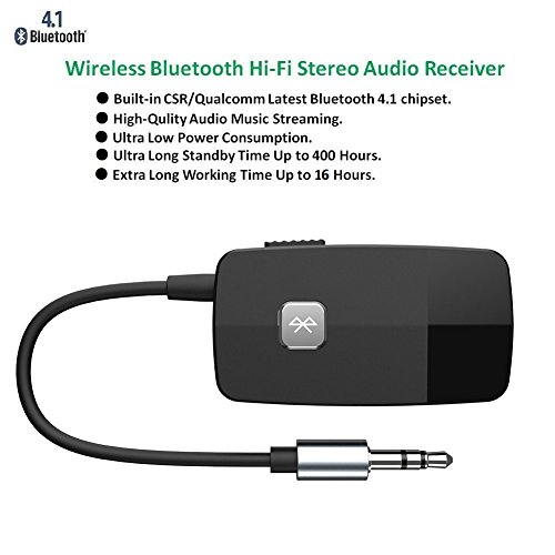 ★ Featured Bluetooth V4.1+EDR : Advanced CSR 4.1 chipset combining A2DP comes with stable connectivity and remarkable signal stability. Non-stop and clear HiFi music streaming creates enjoyable listening experience.Ideal to be used for your wired Headphones/Speakers, home sound system,car stereo and portable non-bluetooth device via the 3.5 mm or 2.5 mm RCA audio connector.