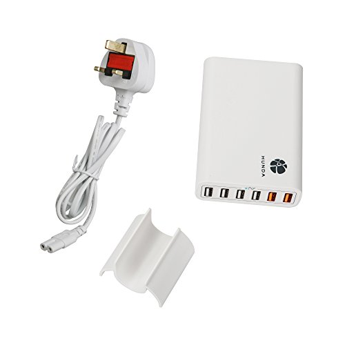 HomeMobile Phones & CommunicationChargersDesktop Chargers Hunda 60watt 6-port QC2.0 USB Charger 12 Amp Desktop Rapid Charger Multiport USB Charging Station (White)