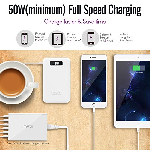 6-USB ports: Charges 6 devices at rapid speed simultaneously (up to 10A total & single 2.4A)