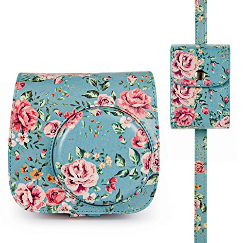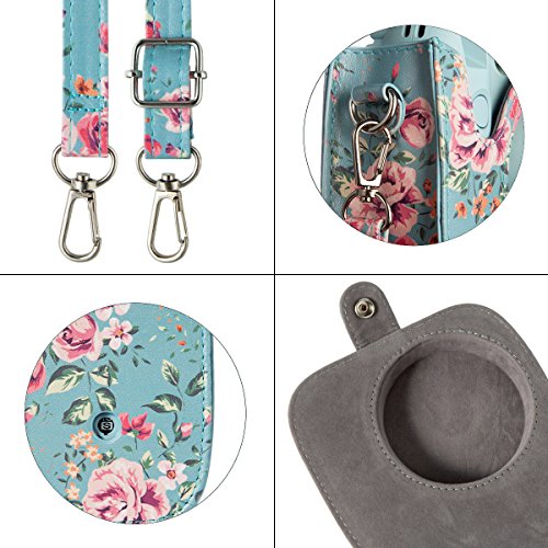 EXQUISITE DESIGH CAMERA CASE: The PU leather camera case is well-designed with adjustable shoulder strap. It has a detachable flap that folds over the front of the camera. The front can be removed by buttons so you can take pictures with the camera still in the case. Cute Photo Case, Easily fit one pack of film (10 sheets) and 10 photos, without the film pack it can hold nearly 50 photos.