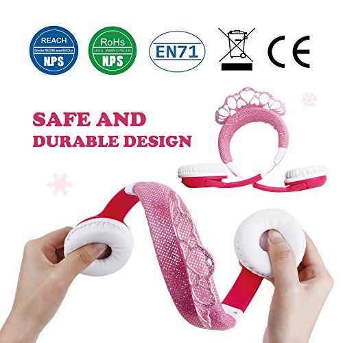 EACH GIRL HAS A PRINCESS DREAM: Kids look like an adorable princess when put these headphones on,girls would fall in love with at their first sight,these headphones are the perfect gift for every girl. (Recommended for kids 3-12)