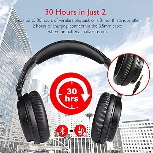 More than “30-hr Battery Life”, Bluetooth & Optional Wired Connection — Pair fast and stay stable with your Bluetooth enabled device. The battery provides up to 30 hrs music playing time in 2-3 hrs full charge. Besides, OneAudio Studio Wireless C also has a backup audio port, you can use the provided audio cable to connect to your phones without worrying about running out of battery.