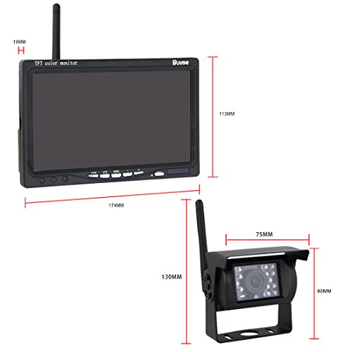 Phansthy 7″ LCD TFT backup monitor built in 2.4GHz wireless receiver offers high resolution image and support PAL&NTSC. Rearview IR reserve camera built in 2.4GHz wireless transmitter and 18 IR LED for night vision.