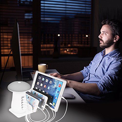 This original charging station can let you charge your all devices in one location and reduce the clutter, without taking up desk space. Also the night lighting with soft, stable and non-flickering design is so friendly for your eyes that you can enjoy soft atmosphere, comfortable, flicker-free and ghost-free lighting for reading / work / study for a long time.
