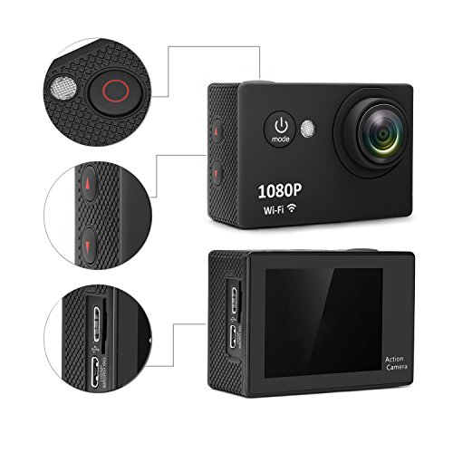 Sports Action Camera Wifi 1080P/4K Full HD 12MP Waterproof Cam Underwater 30M, 170° Wide Angle, 2.0″
