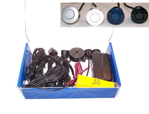 Specifications: 1.Measuring the distance by radar 2.Alarm by three step Bi-Bi sound 3.2-8 sensors are available 4.Full-weather design, un-affected by wind, ice, snow & rain 5.Some other kinds of sensor colors and styles can be fitted. 6.High quality and easy to install Technical parameters: * Rated voltage: 12V DC * Operating range: 10.5V – 16V DC * Rated current: 50mA – 180mA * Detecting distance: 0.3 – 1.5m * Ultrasonic frequency: 40KHz * Working temperature: -30 to +70 deg. C Kit includes: Main box Four sensors and sensor spacers. Buzzer with about 2 meters cable power cable with about 60cm cable 21mm Hole Saw for drill hole on plastic bumper 3M double side sticker for stick the main box on vehicle User’s manual and installation guide