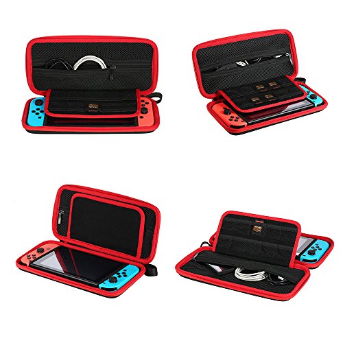 KEEP DEVICE AWAY FROM SCRATCHES AND SHAKE: The outer hard shell protects machine from drops. Inner soft EVA material give your Nintendo Switch a snug and comfortable home. A central soft flap protects the screen from being scratched inside the case. A elastic strap secures the Switch from dropping out.