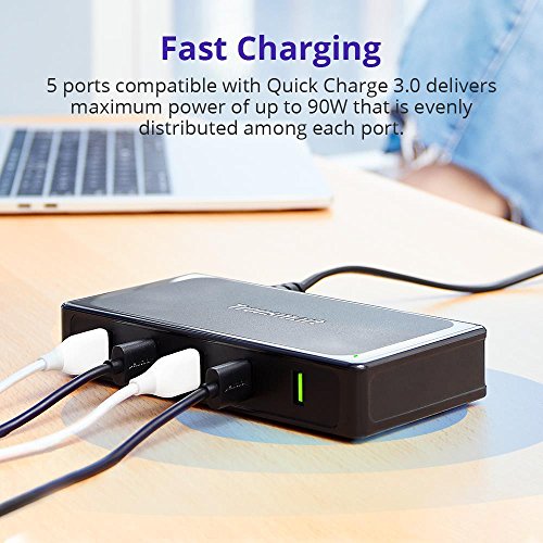 ★【Tronsmart Titan Plus Desktop Charger:】 Features Quick Charge 3.0 with advanced VoltiQ technology in all 5 ports to provide optimal charging speed for all your devices.