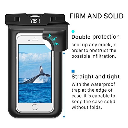 Excellent Water Resistance:[IPX8 Certified Pouch] For your safety, every waterproof case has been tested under water at 30 meters depth for half an hour. Both snap-and-lock seal clip and fully enclosed black edge provide YOSH waterproof case a better seal ability and durability, constantly protect your cell phone from water invader well.