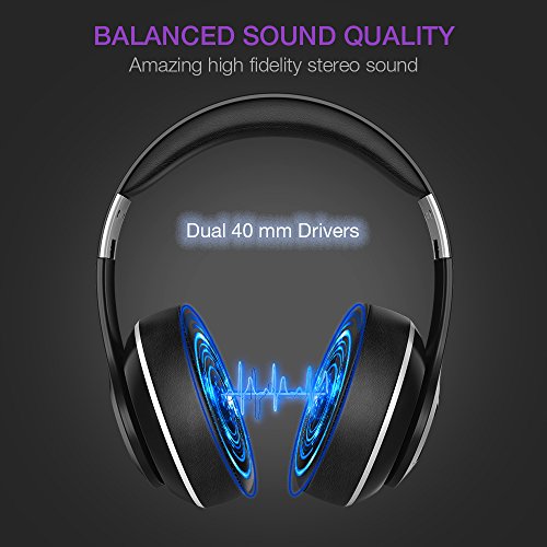 Proprietary 40mm large-aperture drivers.You can enjoy the precise guitars,,crisp percussion,clear vocals and bass ,which will help you discover the best sound that brings out your music-including subtle details you have never noticed. Equipped with professional ear pad made of protein and 90 swiveling ear cups.More durability,high-quality,skin texture, lightweight, Which make it comfortable for customers to wear the headphones for 24 hours.And pay attention that you'd better take off the headphone every 2-3 hrs to get your ears relaxed and comfortable. Built-in microphone with high quality and powerful bluetooth function. - The customers can take calls under wired. And The over ear headphones also support volume control and switching up playlist.What's more,you can require quick and stable connection with your bluetooth devices or others via bluetooth adapter.